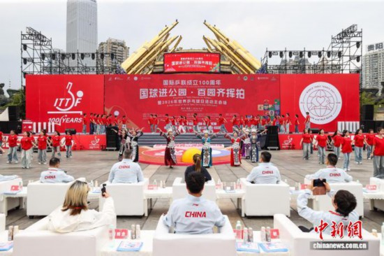 国际乒联成立100周年“国球进公园·百园齐挥拍”暨2026年世界乒乓球日贵阳主会场活动,4月20日在贵阳筑城广场举行启动仪式。